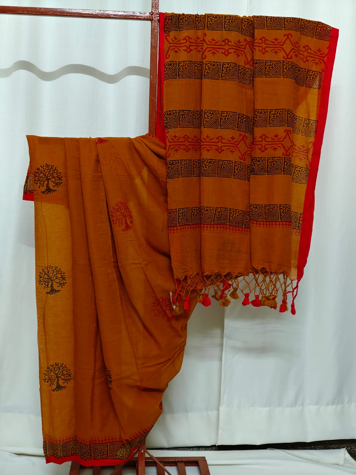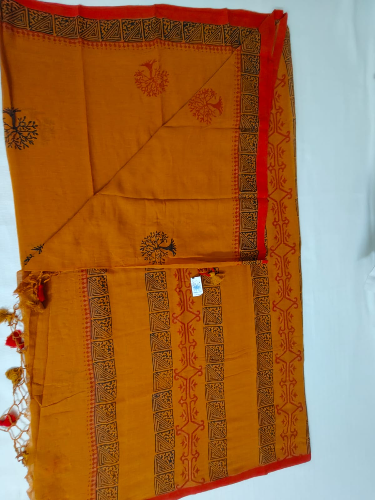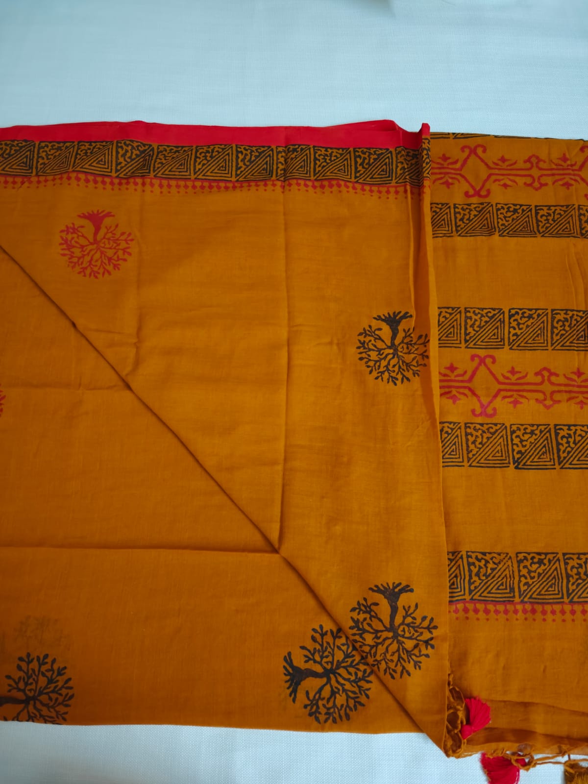 Description: Block print on hand woven cotton. Handloom Mark certified.