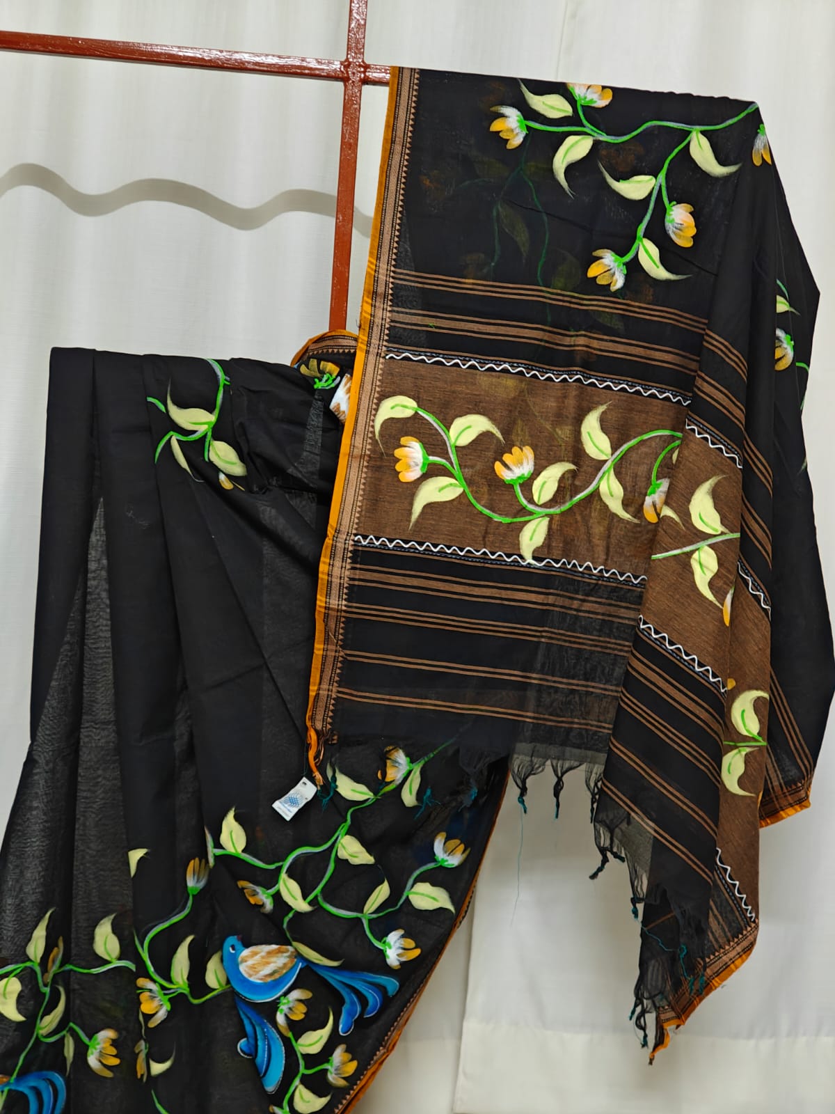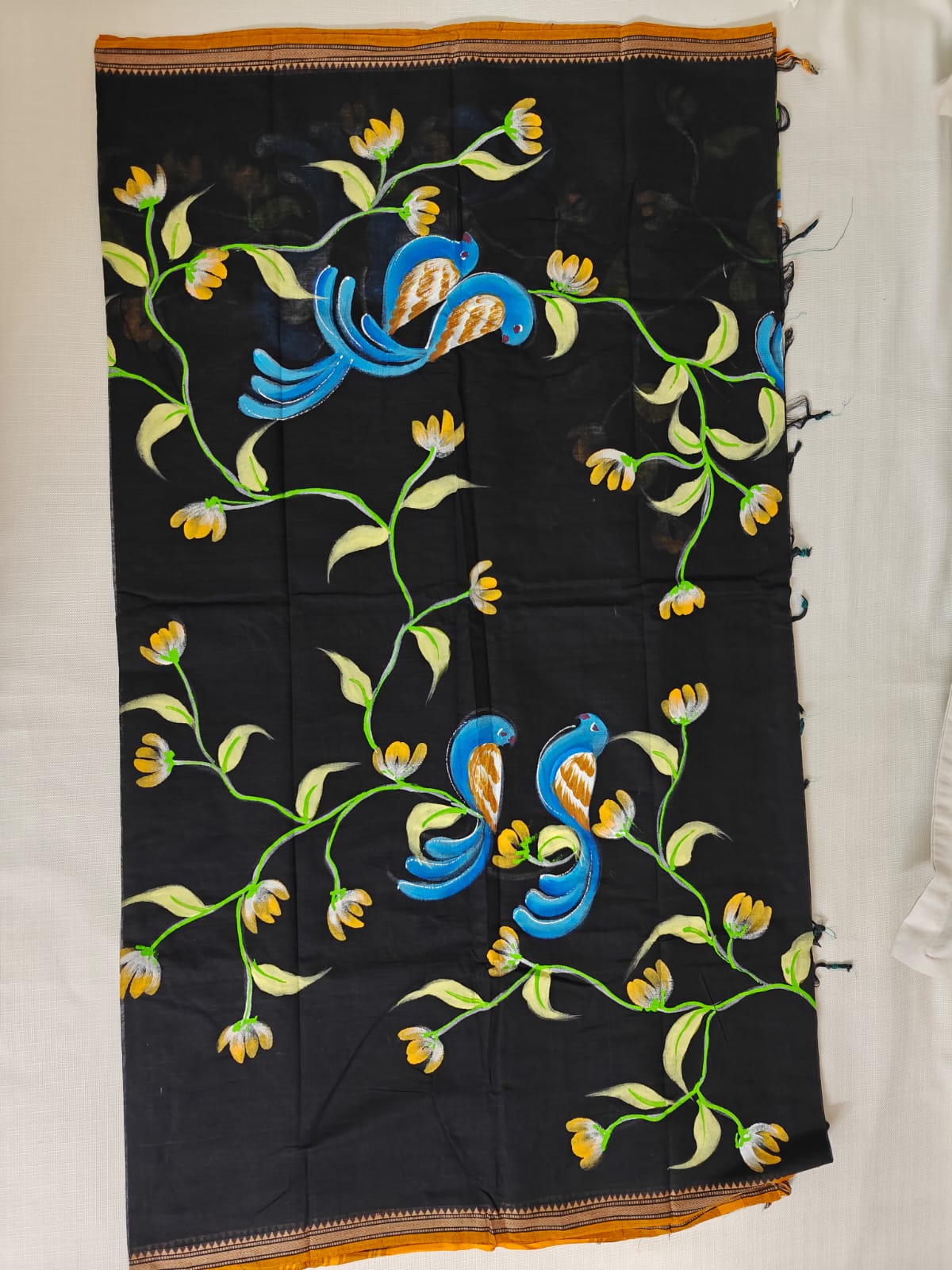Description: Striking yet elegant garden motifs hand painted on cotton. Handloom Mark certified.
