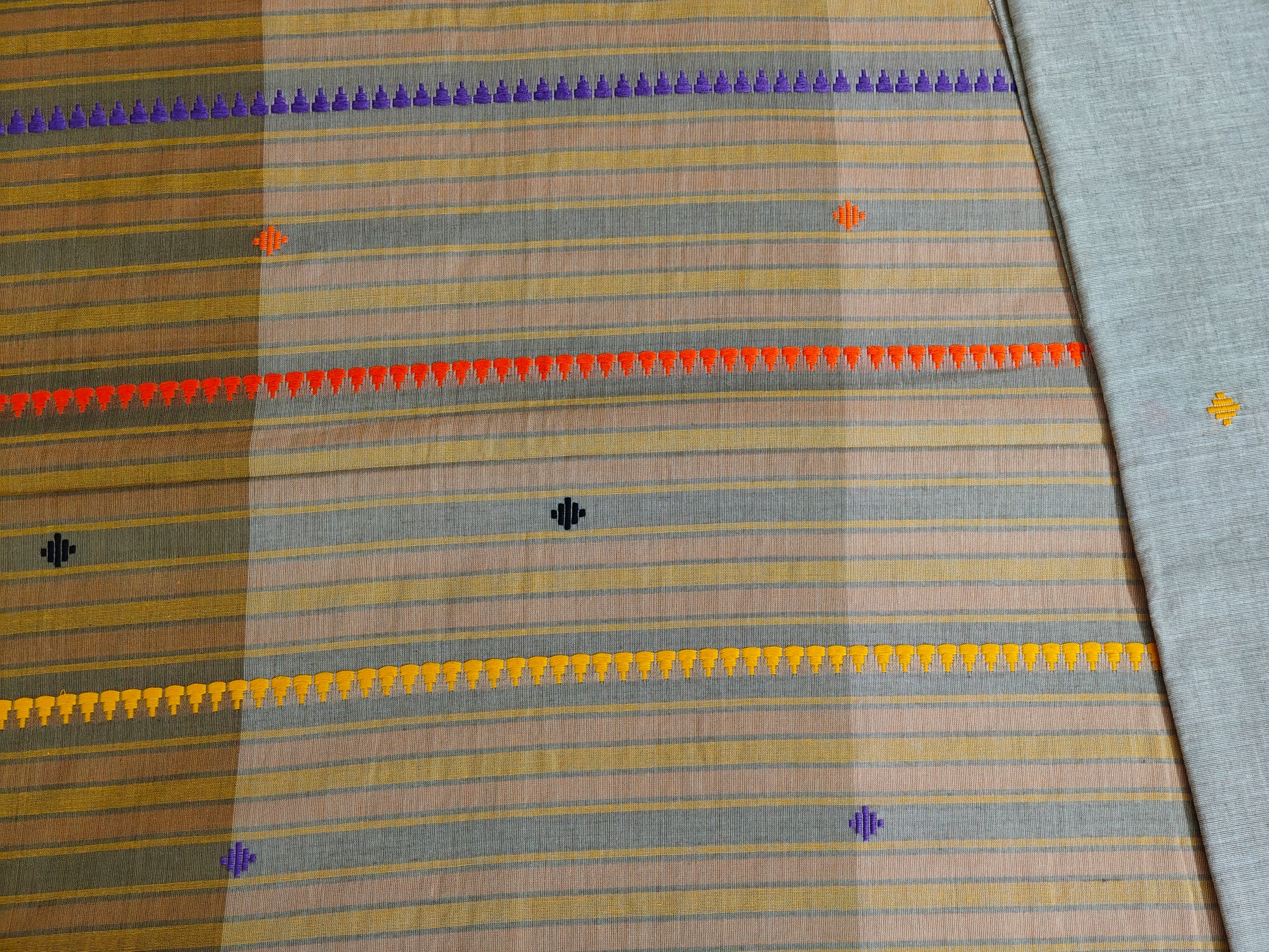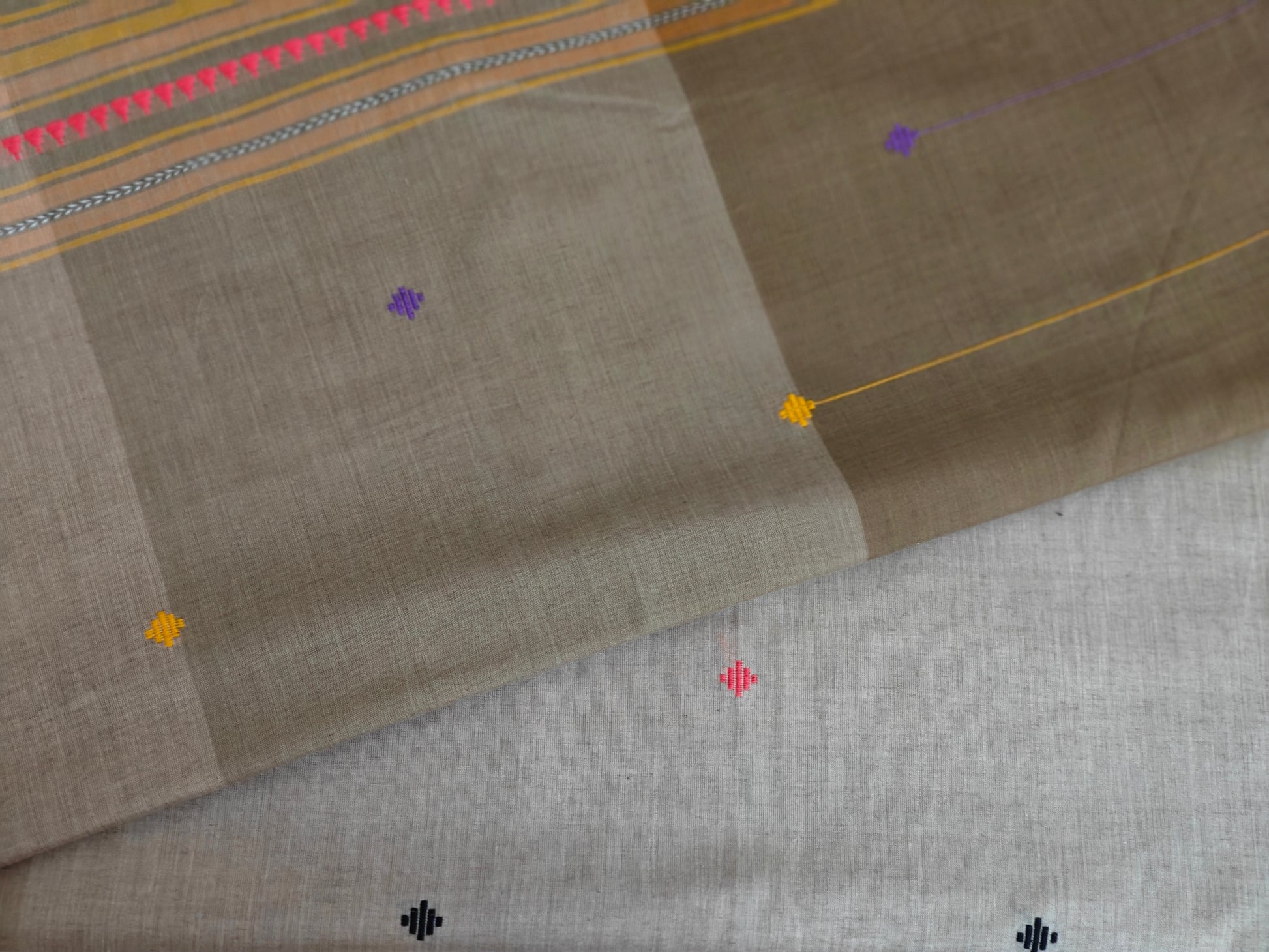 Description: Four subtle pastel shades of cotton with maku. Handloom Mark certified.