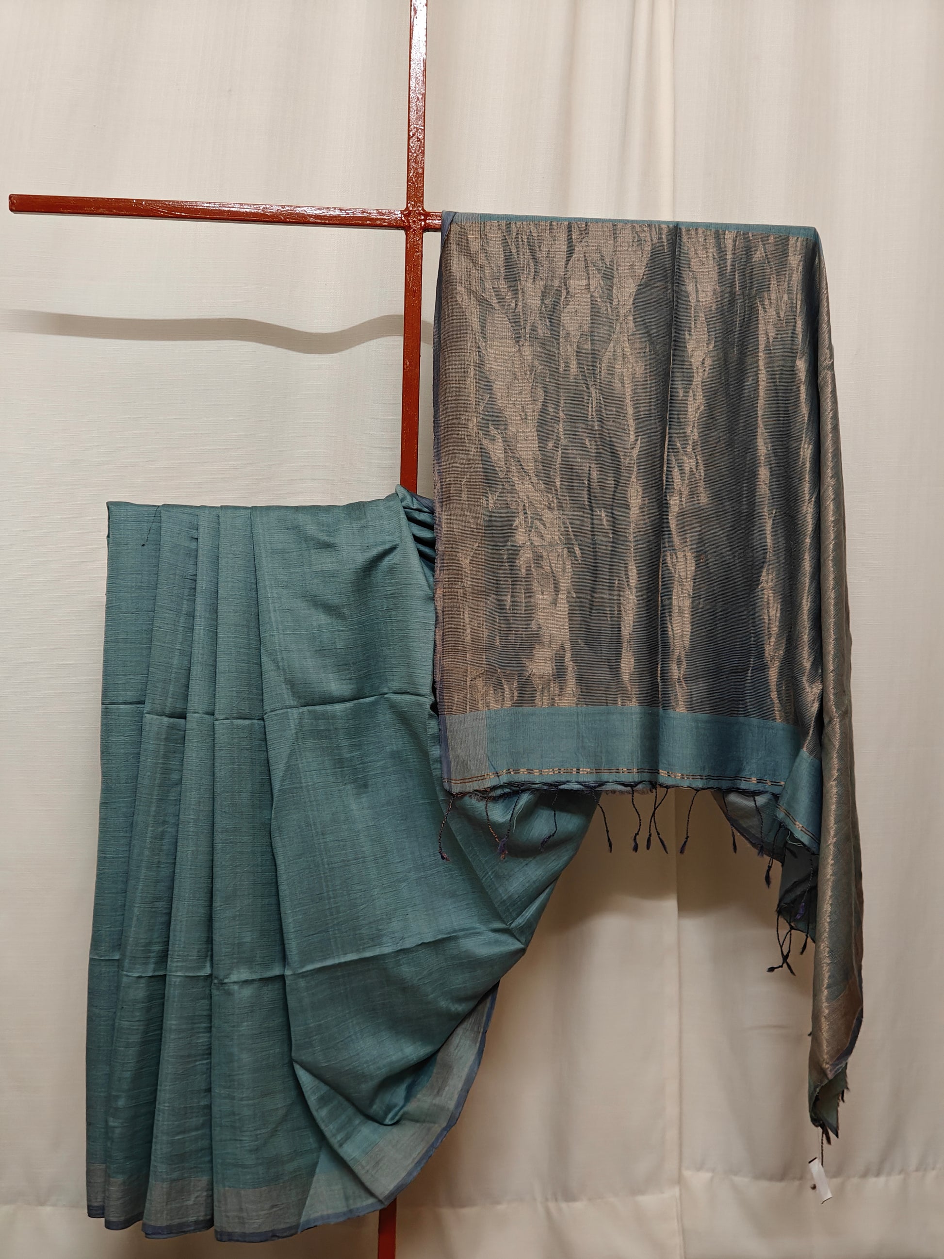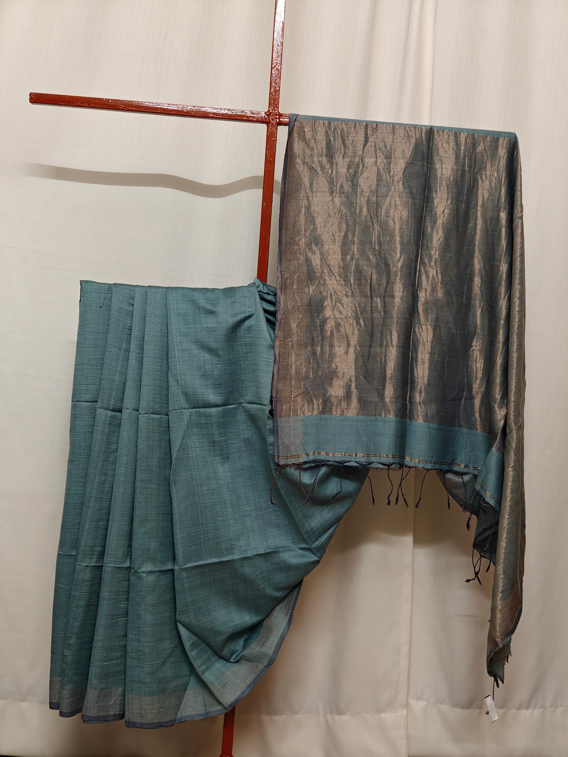 Description: Elegant Dhonekhali cotton woven with silk and tasar. Handloom Mark certified.