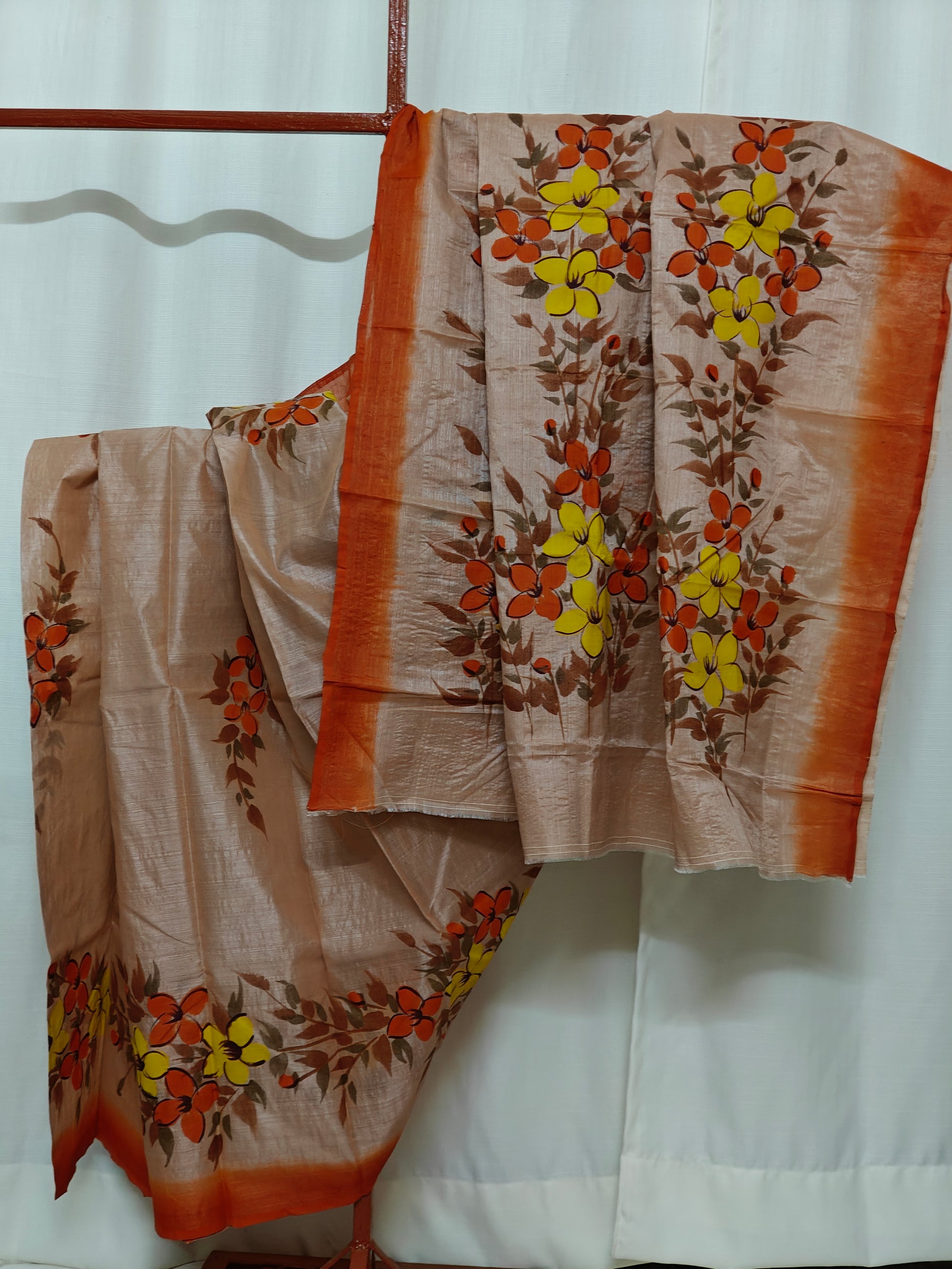 Description: Cotton with local 'dishi' tasar bearing floral motifs.
