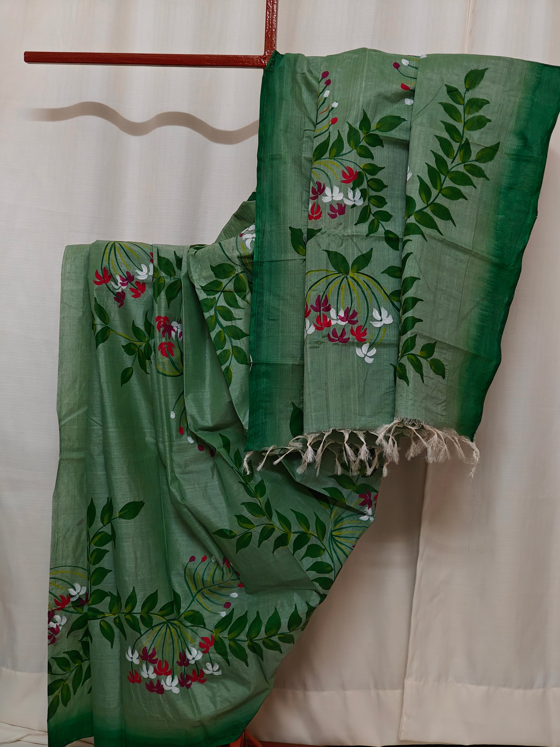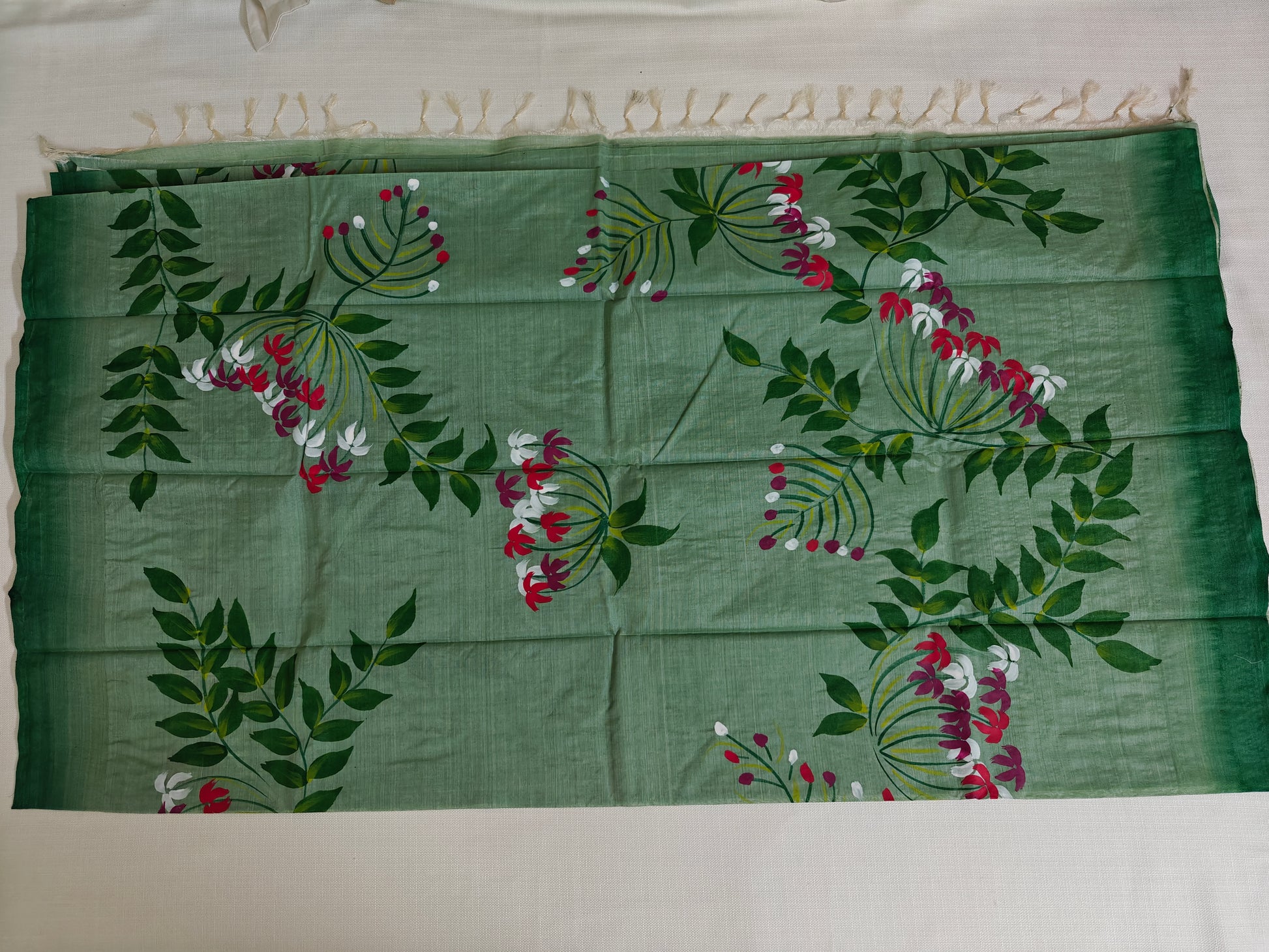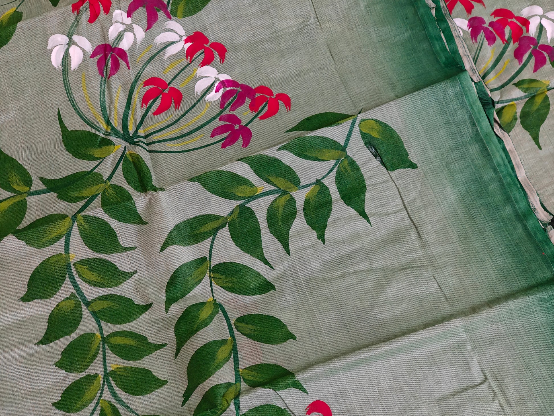 Fabric: Dhonekhali cotton by cotton (tana aar poren) with hand loom and patterns expressed by hand operated shittle (maku). The sarees are not starched.