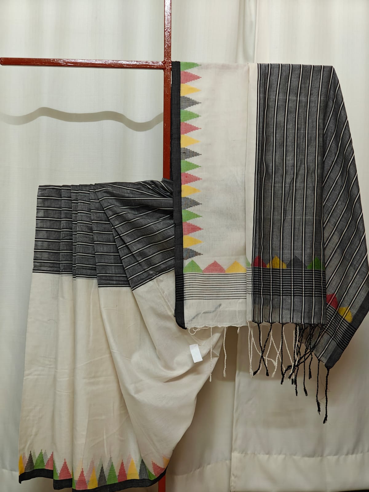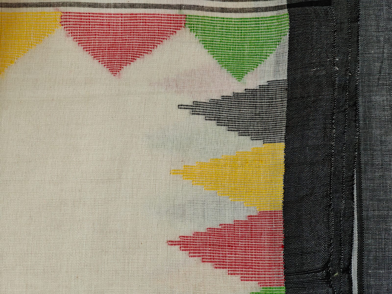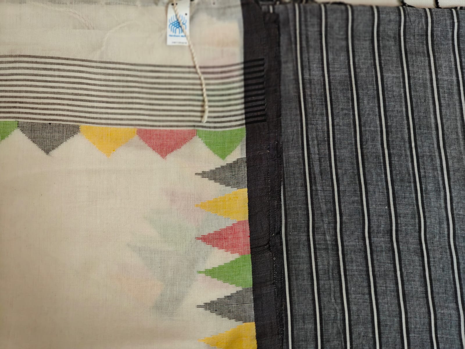 Description: High quality cotton in black and white bearing geometric patterns. Extremely lightweight. Handloom Mark certified.