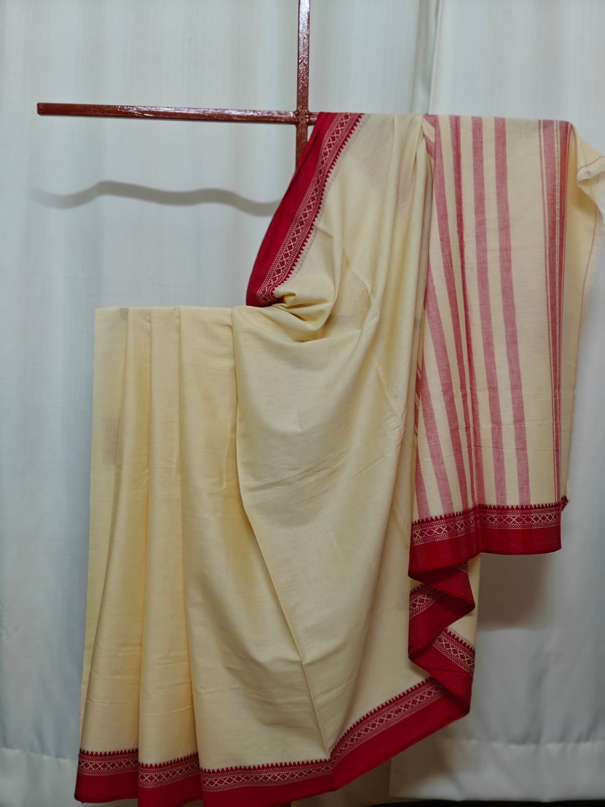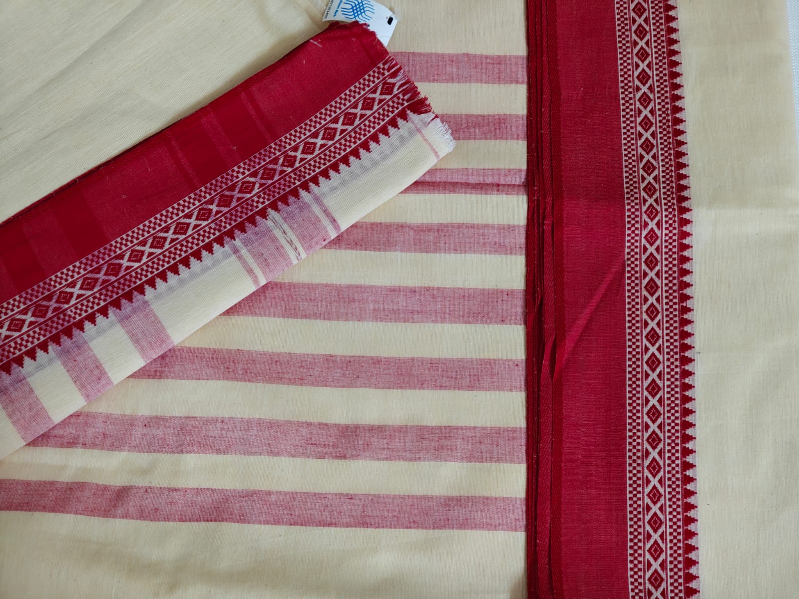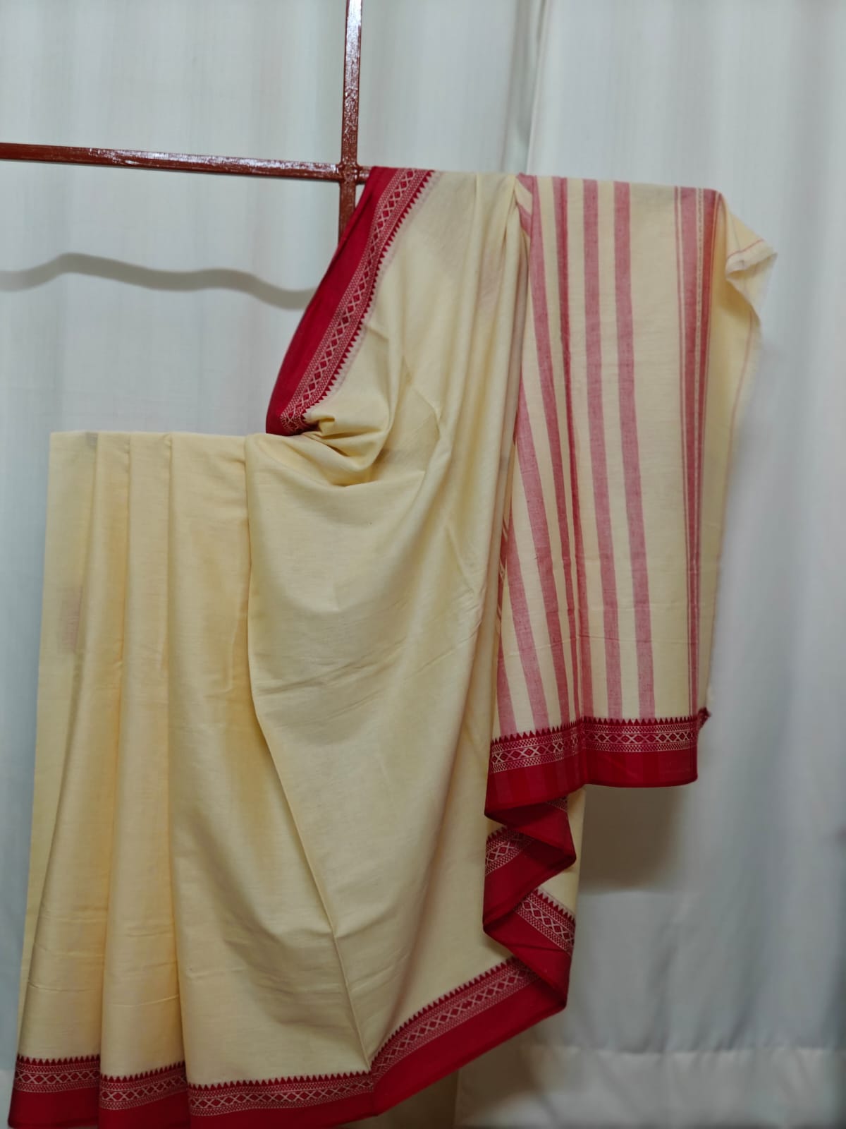 Description: Kora and red to make Pujo special. Handloom Mark certified.