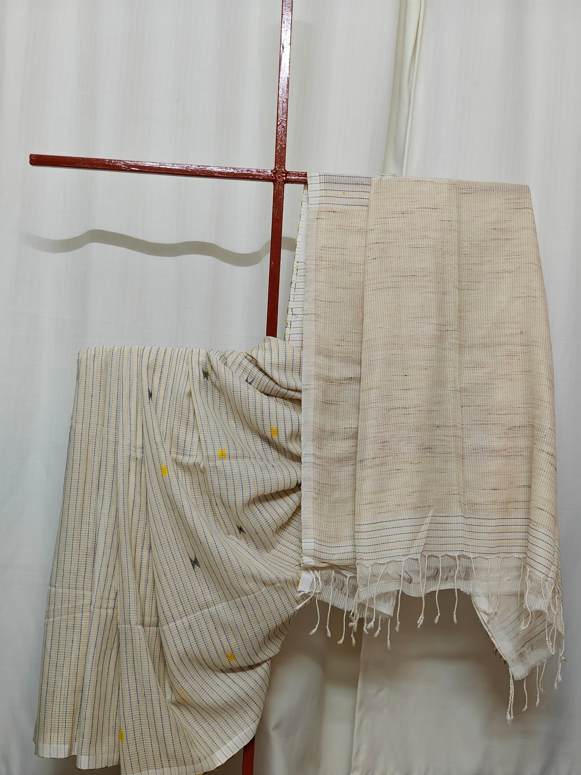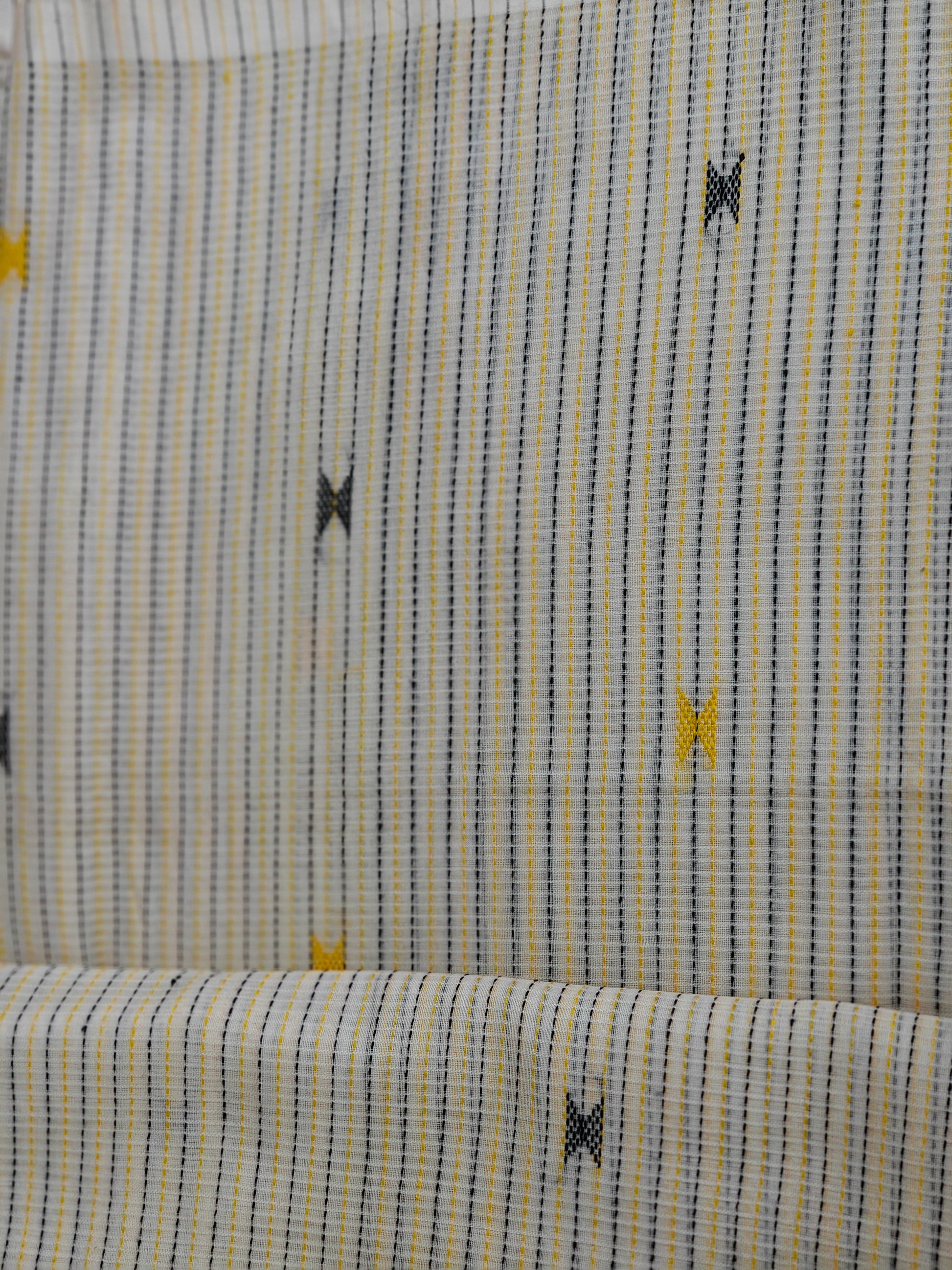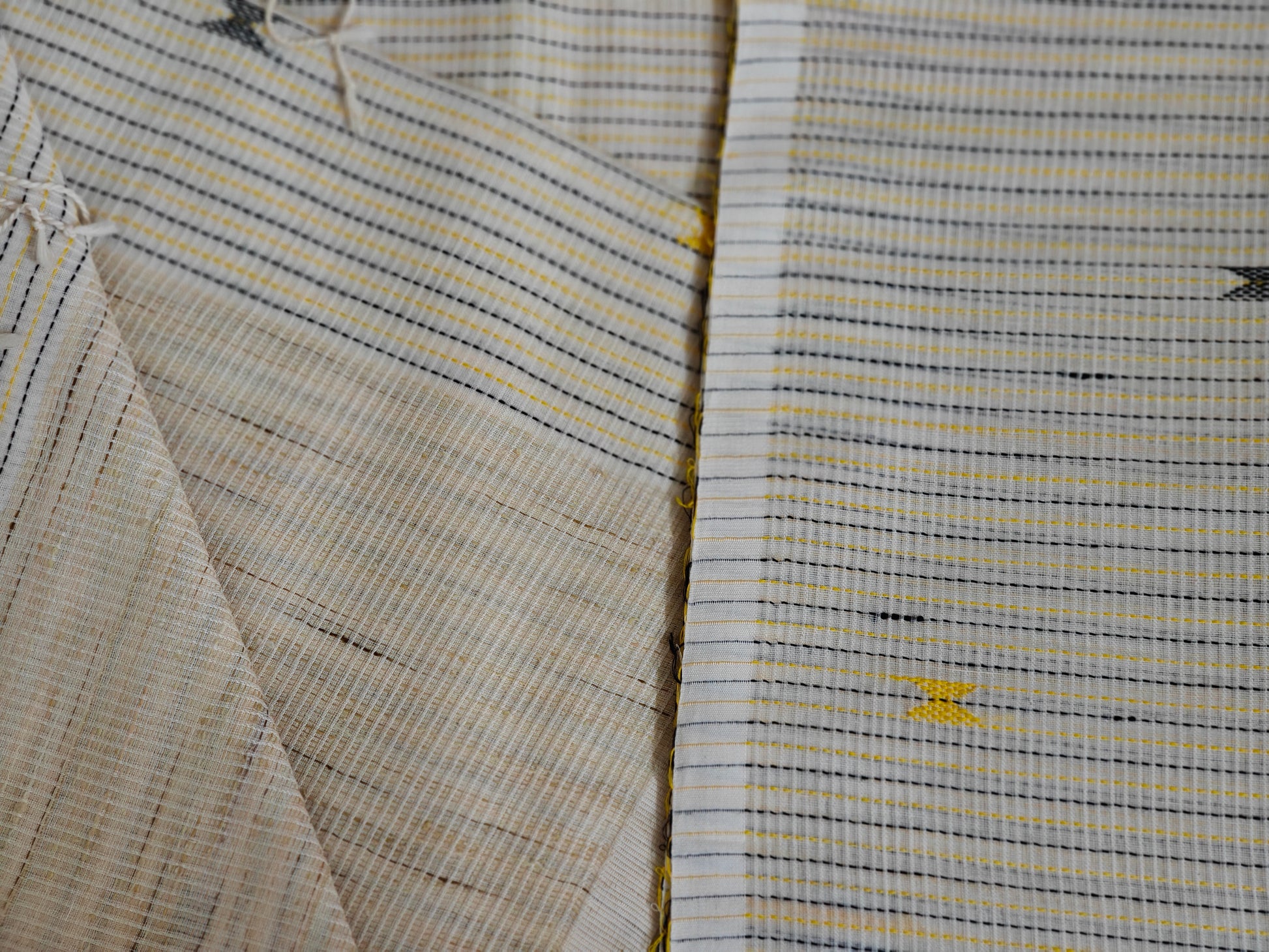 Description: Exquisite hand woven motifs on Dhonekhali cotton. Handloom Mark certified.
