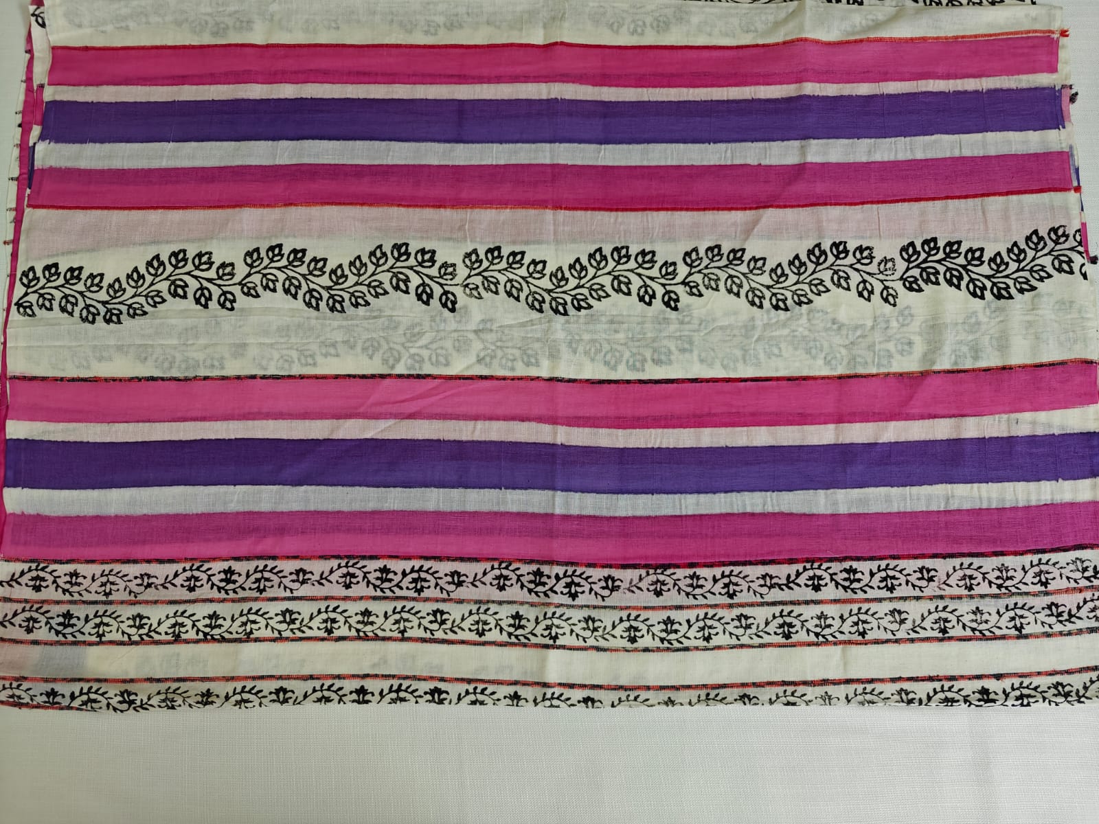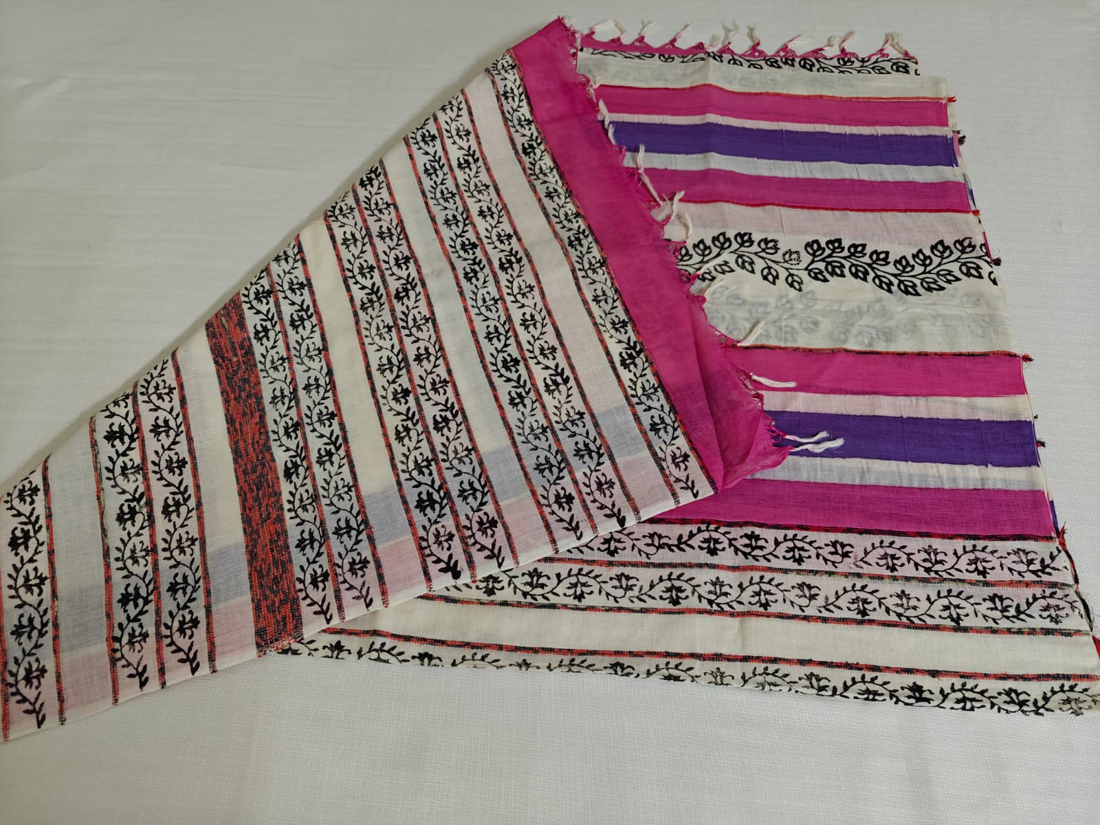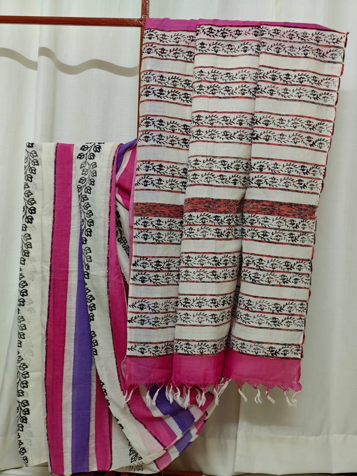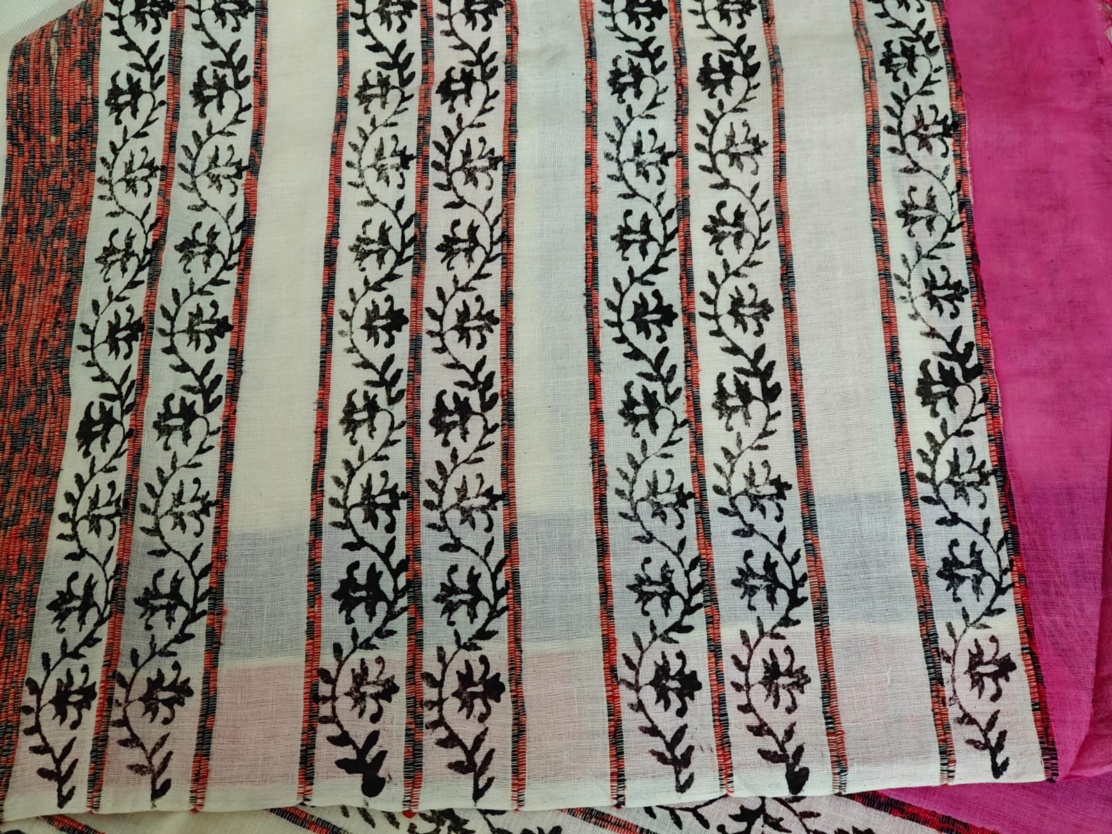 Description: Pure cotton saree with khesh lining. White with floral pastel shades and intricate patterns.