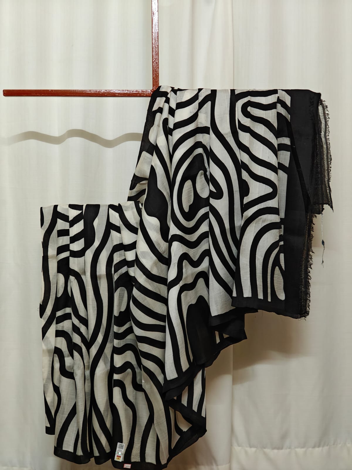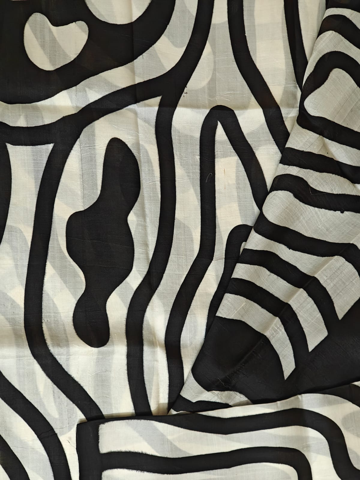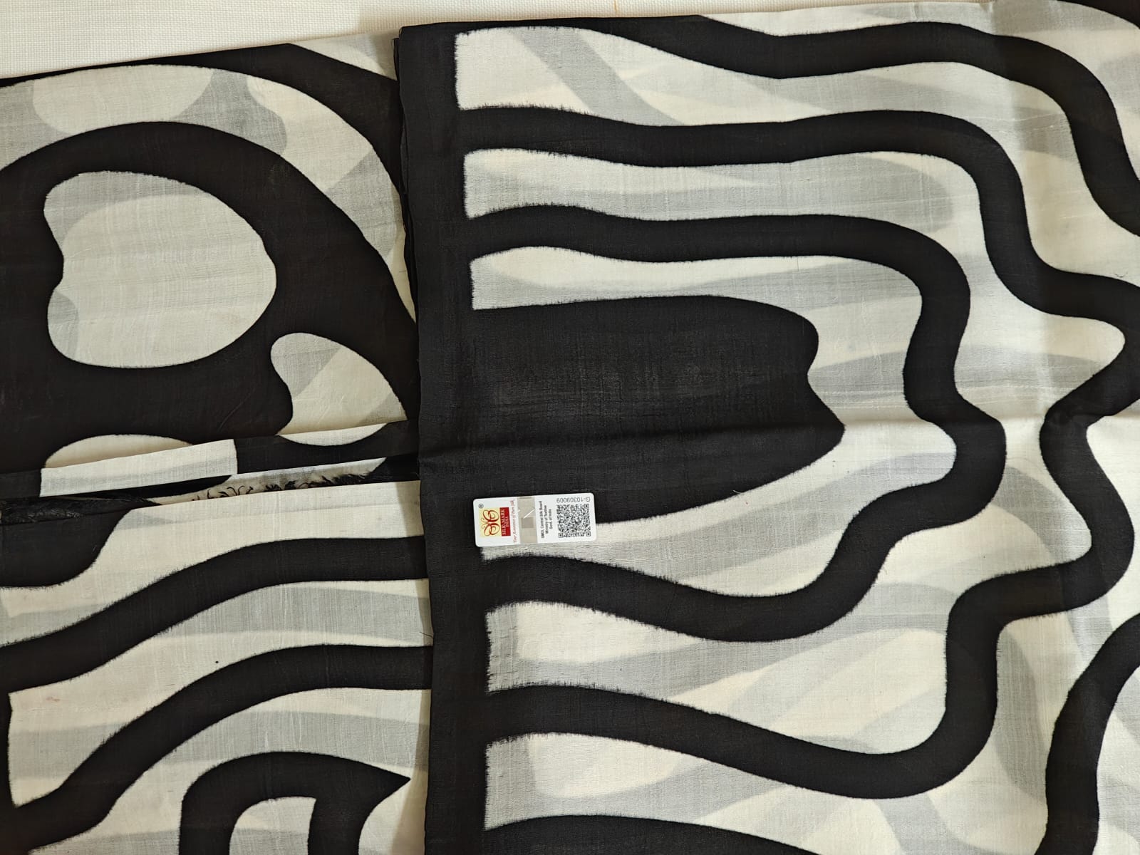 Description: Estuary patterned blockprint saree. Silk Mark certified.