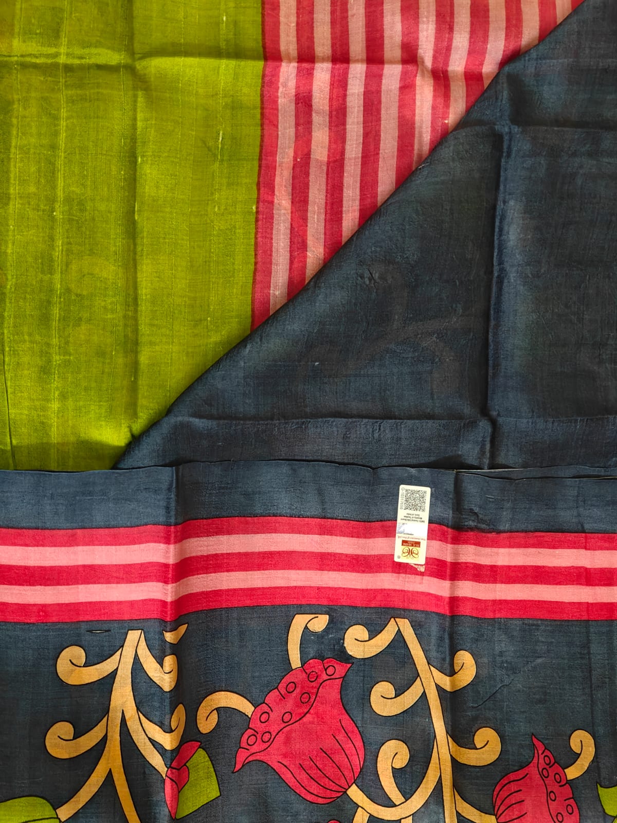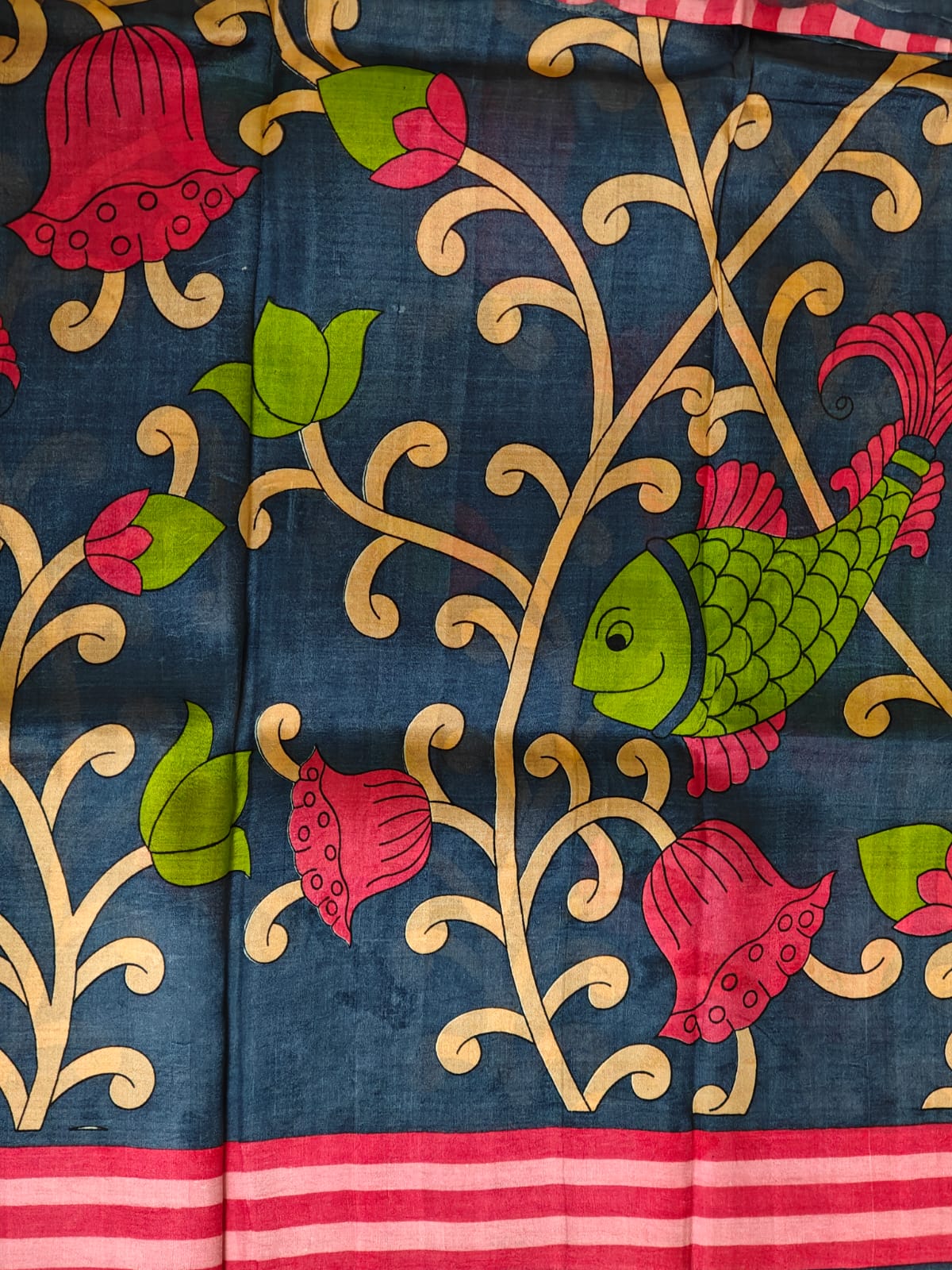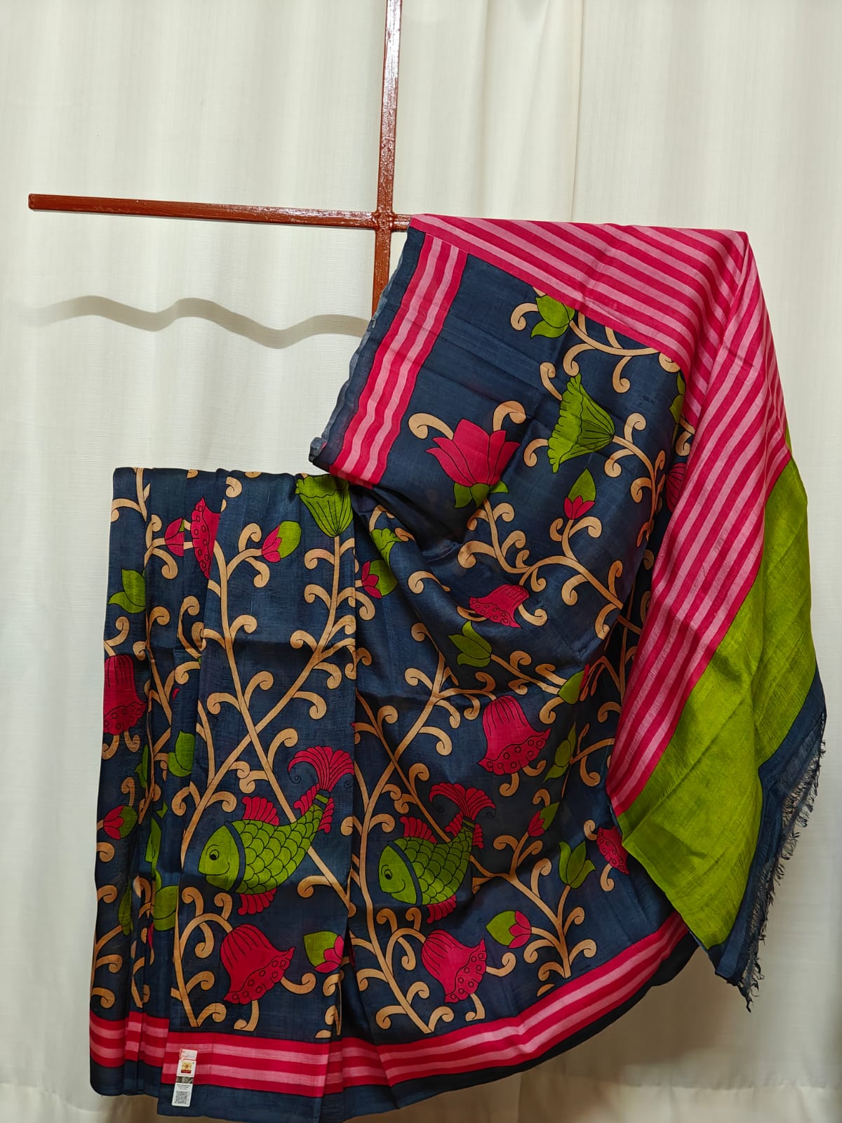 Description: 'Jongla' print on blockprint. Silk Mark certified.