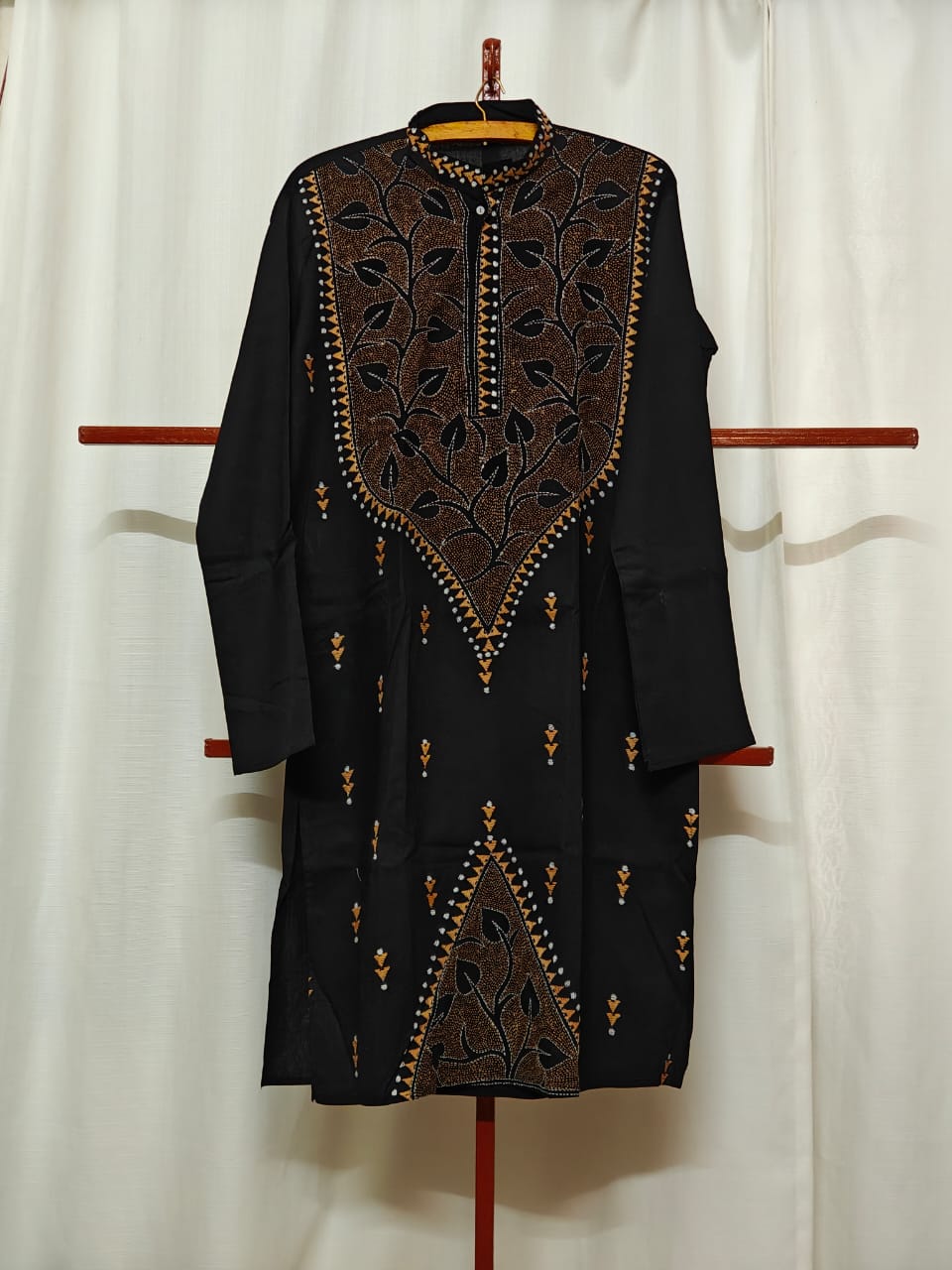 Description: Reverse katha hand embroidery on cotton.
