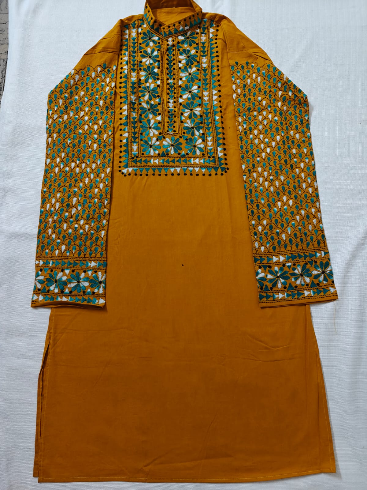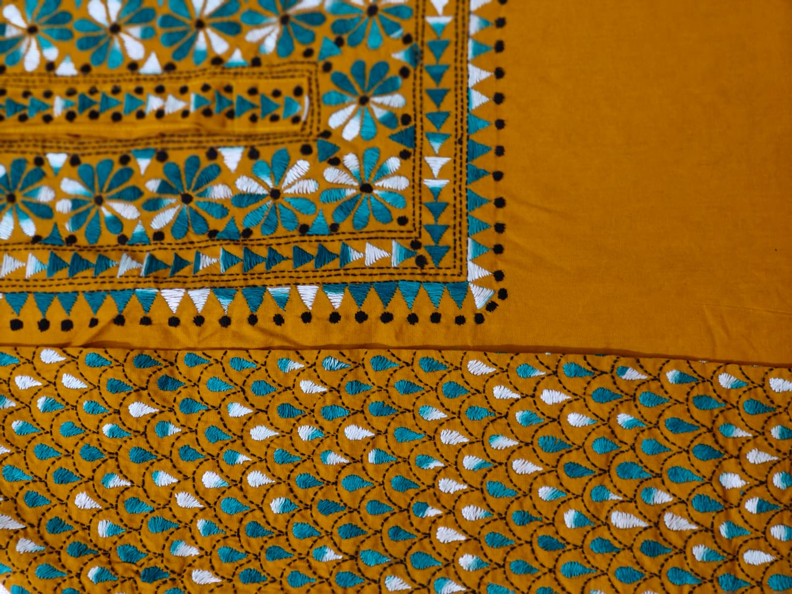 Description: Katha stitch hand embroidery on cotton.